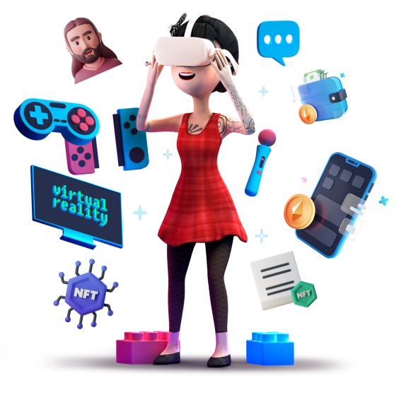 Step into an immersive space to display and trade cards with others.